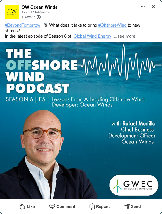 Starting the month strong! OW and Siemens Gamesa proudly received the “Best International Energy Initiative” award at La Noche de la Energía 2025, organised by El Periódico de la Energía.